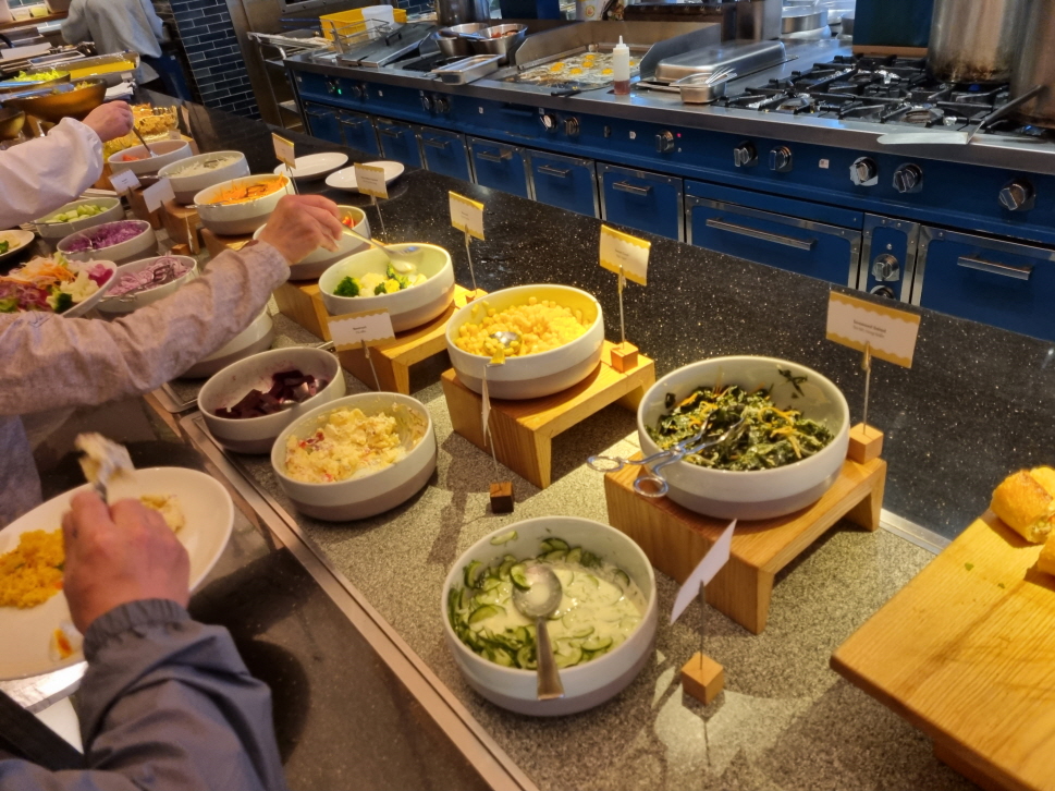 부담 없이 먹기 좋은 메뉴로 뷔페가 차려져 있습니다.