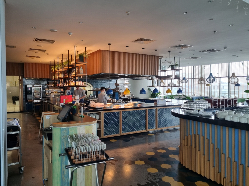 전 날 낮에 본 조식 식당은 산뜻한 느낌으로 꾸며져 있었어요